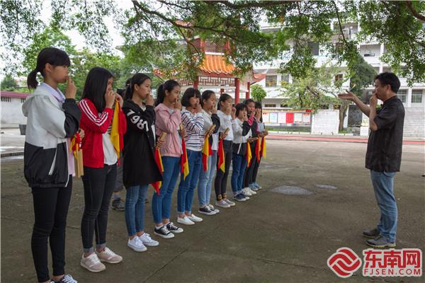 謝秀山在公園練習(xí)樹葉吹奏。 東南網(wǎng)記者 李凌生 攝 同樣是邱少春的弟子,與鄒開煌不同的是,謝秀山在年輕時就已經(jīng)學(xué)會了樹葉吹奏?!半m然也會吹小曲,但水平和邱老師差太遠了!”正是在鄒開煌的引薦下,謝秀山認識了邱少春并拜入門下?!扒窭蠋煾嬖V我怎么處理連音、停頓等技巧?!痹谥x秀山看來,除了爐火純青的吹奏技藝,更難能可貴的是,邱少春總結(jié)提煉出了一套自己的教學(xué)方法,而這是他與其他吹葉藝人最大的差別。 “如果沒有理論指導(dǎo),樹葉吹奏技巧很難掌握,技藝的傳承也比較困難?!蓖ㄟ^二十多年的實踐和摸索,邱少春逐漸形成了一套較穩(wěn)定、科學(xué)的樹葉演奏技藝及教學(xué)方法。“我把整套體系分為呼吸、選葉、演奏、概念、意念五大環(huán)節(jié),幫助學(xué)員全面系統(tǒng)地了解樹葉吹奏?!鼻裆俅涸谧约旱臉淙~吹奏培訓(xùn)班大力推廣這套教學(xué)方法,許多學(xué)員在幾個月內(nèi)就吹出了完整的曲調(diào)。 今年暑假,由邱少春主講的樹葉吹奏輔導(dǎo)班如期在上杭舉行。近一周的時間里,輔導(dǎo)班吸引了來自全國各地的學(xué)生、教師、家庭主婦等不同職業(yè)近百名吹葉愛好者,而這樣的培訓(xùn)已經(jīng)連續(xù)開展了3年。 “樹葉吹奏取材簡單,入門門檻低,非常適合民間推廣。”邱少春說,樹葉吹奏源于民間,如今能夠回歸民間,豐富群眾的藝術(shù)生活,他樂見其成。 建基地 揚技藝 今年國慶期間,一部由上杭縣樹葉吹奏協(xié)會傾力打造的樹葉吹奏《我和我的祖國》原創(chuàng)視頻在當?shù)嘏笥讶V為流傳。令出品方?jīng)]想到的是,這部獨特的作品迅速在網(wǎng)上躥紅,幾天時間里先后被市里和省里的官方媒體轉(zhuǎn)載,并最后被新華社視頻部編輯采用。 在這部原創(chuàng)視頻里,邱少春帶著上杭縣第二實驗小學(xué)的學(xué)生和一群吹葉愛好者擺出不同造型,用深情款款的“葉笛”曲調(diào)表達對新中國成立70周年的祝福。 “2017年,我們率先將樹葉吹奏作為特色教學(xué)項目引進學(xué)校,并成立了傳承基地。”上杭縣第二實驗小學(xué)黨支部書記鄧長新說,學(xué)校為樹葉吹奏配置了專門的老師、編制了校本教材,還成立社團每周為孩子們開展培訓(xùn)。正是基于良好的教學(xué)基礎(chǔ),該校在師生中分別成立了幾個較為穩(wěn)定的表演團隊,其中更有30多名教師成為縣樹葉吹奏協(xié)會的骨干成員。