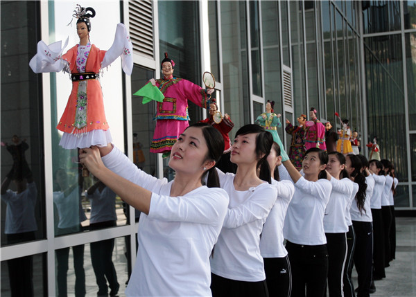 蔡美娜赴摩洛哥參加第十八屆世界中學(xué)生運動會接旗儀式演出。受訪者供圖 2018年5月,2020年世界中學(xué)生運動會的接旗儀式在摩洛哥舉行,晉江市在接旗儀式上帶來了四分鐘的表演。在這過程中,蔡美娜與劇團同事操控著掌中木偶,舞動一條長綢,向世界各地的觀眾展示一場精彩的演出。今年7月,外交部福建全球推介活動現(xiàn)場互動交流中,蔡美娜帶著晉江掌中木偶驚艷亮相。11月18日,福建省經(jīng)貿(mào)和文化旅游推介會在法國巴黎舉行,在本次推介會上,蔡美娜以一場精彩的掌中木偶戲贏得了現(xiàn)場觀眾熱烈的掌聲。“近幾年,晉江掌中木偶戲漸漸走出國門,讓世界更多人知道并喜歡上這份‘偶趣’,這對我們這些傳承人來說是一件欣慰的事情?!?/p> 新人接力技藝再添生機 在傳承與保護上,蔡美娜的觀點是繼承老一輩人執(zhí)著刻苦的精神,并將這項非遺文化在保留精髓的同時又對內(nèi)容與表演形式等進行創(chuàng)新。近年來,蔡美娜與劇團工作人員結(jié)合本地文化與時代主流,經(jīng)歷了多年的創(chuàng)作打磨,完成《五里長虹》《清源仙女》等新創(chuàng)劇目。此外,為了貼合簡短的展示性演出,劇團演員也排練出一些片段,通過人與木偶共同站在舞臺上的“人偶合一”表演,讓觀眾可以更直白立體地了解晉江掌中木偶。在今年5月舉辦的晉江文化旅游節(jié)上,晉江市掌中木偶藝術(shù)保護傳承中心與廈門大學(xué)技術(shù)團隊合作開發(fā)的掌中木偶機器人首次亮相,與劇團演員同臺演出,這成為了傳統(tǒng)文化以現(xiàn)代科技形式呈現(xiàn)的一次嘗試。