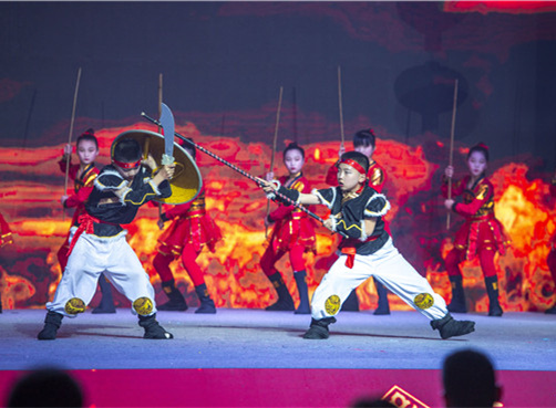 在2020年第四屆平潭少兒春晚上,陳文英的小弟子們上臺演出。 江信恒 攝 近年來,藤牌操開始頻繁在重要場合中亮相,發(fā)展可謂有聲有色。2017年1月,平潭藤牌操入選福建省第五批省級非物質(zhì)文化遺產(chǎn)代表性項目名錄,再次迎來了重?zé)ü廨x的時刻。2018年7月,平潭藤牌操傳承基地落成,分散在各地的藤牌操傳人得以來此交流學(xué)習(xí),努力恢復(fù)部分失傳的套路,還能對其進(jìn)行重新打磨改良,更好地發(fā)揮傳承與創(chuàng)新的作用。 如今,陳文英將目光投向文創(chuàng)行業(yè),希望能夠緊抓文創(chuàng)熱潮,吸引藝術(shù)家來嵐開發(fā)藤牌操相關(guān)文創(chuàng)產(chǎn)品,讓這件“傳家寶”能夠走入更多年輕人的視野?!疤倥撇俪休d著保家衛(wèi)國、英勇無畏的正能量,我期待著,能有更多人將它學(xué)精學(xué)透,傳承下去?!彼f。 (東南網(wǎng)記者 張哲昊) |