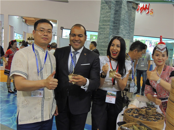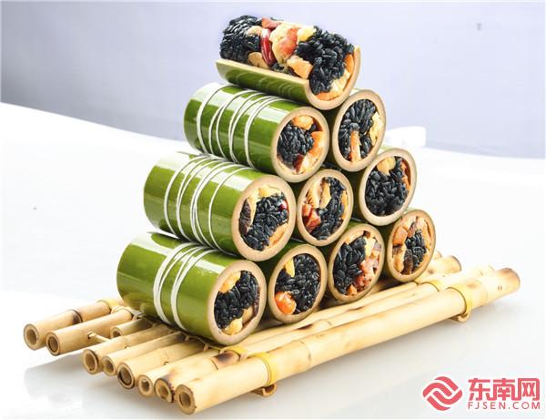 竹筒飯烏米飯。受訪者供圖 除了研發(fā)與傳統(tǒng)節(jié)日相關(guān)的烏米粽,他們還生產(chǎn)各種口味的手抓烏米飯、五米漢堡、竹筒飯等多種新品,受到越來越多食客的青睞。 “把傳統(tǒng)技藝與市場有效接軌,非遺才能真正‘活’起來,才能傳下去?!彼{進良認為,烏米飯要傳播的更遠就要從自身出發(fā),將傳統(tǒng)畬族文化元素和現(xiàn)代元素相結(jié)合,順應(yīng)市場變化,最大限度地滿足各類消費者的不同需求。 作為一名畬族人,藍進良擔(dān)負起帶著烏飯“走出去”的使命。近年來,藍進良通過參加各種旅游節(jié)、美食節(jié)、文博會、農(nóng)產(chǎn)品推介會、“一村一品”展銷會等,讓畬族烏飯在這些舞臺上亮相展示,他帶去的烏飯也總是被搶購一空。