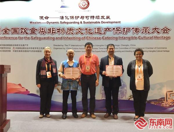 立強畬族烏飯經(jīng)營部被授予“全國飲食類非物質(zhì)文化遺產(chǎn)保護與傳承示范單位”稱號。左二為吳立強。受訪者供圖 2019年10月18日,在成都舉辦的首屆全國飲食類非物質(zhì)文化遺產(chǎn)保護傳承會上,寧德市蕉城區(qū)立強畬族烏飯經(jīng)營部被授予“全國飲食類非物質(zhì)文化遺產(chǎn)保護與傳承示范單位”稱號。 吳立強并非畬族人,可他一生卻對畬族祖祖輩輩流傳下來的烏飯,有著近乎癡迷般的熱愛和執(zhí)著,并傳承發(fā)揚了烏米飯這一畬族獨特食品的制作技藝。談起與烏飯結(jié)緣的經(jīng)歷,年過古稀的吳立強將那段50多年前的往事娓娓道來。 1962年,20歲的吳立強師范畢業(yè)后來到柘榮縣富溪鎮(zhèn)竹嶺村小學(xué)當(dāng)老師,在這個文盲居多的畬漢混居村落,吳立強受到格外地尊重和照顧。每年農(nóng)歷“三月三”,當(dāng)?shù)氐漠屪謇习傩諘蜑趺罪埥o他,他在品嘗之后就立刻喜歡上了這一畬族美食。 “這么好的美食為何他之前沒有品嘗到?”他帶著疑問,利用暑假走訪了閩東很多畬族村,還到了浙江景寧畬族自治縣考察。令他感到意外的是,烏米飯在這些畬族村居已幾近失傳,這更加堅定了他保護和挖掘這一民族特色食品的決心。 由此,他利用課余時間尋找有關(guān)畬族的書籍了解烏飯的來歷,并向鄉(xiāng)親們討教制作工藝。 經(jīng)反復(fù)實踐,吳立強的烏飯制作工藝日益精進。1995年,吳立強帶著制作的50斤烏米飯來到蕉城,把烏米飯送進各個賓館酒樓免費讓客人品嘗,食客們的交口稱贊讓吳立強吃下了“定心丸”。 此后,他便提前辦了退休手續(xù),舉家遷到蕉城,專門開了個烏飯加工坊。1996年,他把親自制作的烏飯送到福州五一路上各酒樓進行推廣。后來,這些酒樓都與他簽下了合同。最多時,吳立強制作的畬家烏飯打入全省九地市1100多家酒樓,平均每天的銷售量達到上千斤。 擇一事,鐘一生。就這樣,一碗烏米飯,吳立強一做就是50多年。“不僅要把畬家烏飯傳承下去,還要把它創(chuàng)新和發(fā)揚出去。”吳立強把烏飯當(dāng)成了畢生的事業(yè)去奮斗,如今年過古稀,他依然活躍在宣傳推介閩東畬族烏飯制作技藝一線。 傳承千年 曲折發(fā)展終見光