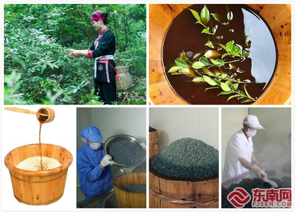 畬族烏米飯制作流程。受訪者供圖 “烏飯的制作流程易懂,但掌握其中的訣竅卻并不容易。”吳立強介紹,烏飯的精加工講求黑、亮、晶、香四個標(biāo)準(zhǔn)。要達到這四個標(biāo)準(zhǔn),就必須嚴格把關(guān)制作程序。例如烏稔樹葉應(yīng)在早上無露水時采摘,采下的樹葉應(yīng)松散放在籃中,不要擠壓,避免發(fā)熱,因為一旦發(fā)熱就會降低各種元素的含量,且超過10小時就不可再用。 “烏飯之所以受大眾喜愛,除了好吃外,它還有養(yǎng)生的功效,主要是因為制作烏飯的重要原材料——烏稔樹?!眳橇娬f,烏稔樹葉也稱南燭葉,具有很高的營養(yǎng)價值。李時珍的《本草綱目》中記載:南燭止泄除睡,強筋益氣,利腸胃,補骨髓,久服,固精駐顏,輕身明目,變白卻老。 “早些年參加展銷活動時,顧客對這個畬族特色產(chǎn)品一無所知,很多人因其外形,連了解的意向都沒有,甚至認為是添加了染色劑。”回想起早些年的處境,吳立強唏噓不已。 吳立強說,為了確保讓顧客放心食用,2005年,他委托福建省農(nóng)科院對烏飯做了營養(yǎng)檢測,檢測結(jié)果表明烏飯是食療兩用的健康食品。 吳立強對于畬族烏飯的堅守,靠的是心底的一份熱愛與初心。隨著時代的發(fā)展,傳承人仍在不斷尋求創(chuàng)新來更好地傳承老祖宗留下來的美食。