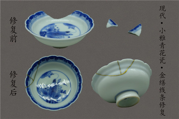 唐潔修復瓷器。受訪者供圖 唐潔說,她可根據(jù)器物種類、破損程度,及客戶的個性化需求,提供不同修復方案,包括金繕修復、考古修復、還原修復等等。 “我們平常修復一件器物的周期快的話三、五個月,慢的話二、三年都是常有的事,文物修復更多的是與器物的對話、與千百年前創(chuàng)造這件器物的作者進行對話:了解器物的背景文化、器型特征,了解作者的創(chuàng)作思路,如何修胎,如何運筆,要無限地復原前人的創(chuàng)作,恢復器物最完整最華麗的狀態(tài)與歷史文化傳播的價值。”令唐潔印象深刻的是之前修復的一件清代?乾隆時期的青花黃帝盤,一共碎了7片還有不同的殘缺,由于釉色豐富,畫工復雜修復周期漫長,為了達到極致的還原,在紋飾修復的時候反反復復返工了不下百次,最后共耗費了2年多的時間才修復完成。 “拿到這些有裂痕的老物件,首先要進行粘合。修復要完成一系列補胎灰、補漆灰、找平、打磨等工作。每一步都需要極強的耐心和細心。對于一些允許創(chuàng)作的物件,而后要根據(jù)器物種類、器形等各方面進行進一步修飾,創(chuàng)作全新的圖案,給老物件穿上一件新的外衣?!闭勂鹦迯图妓?,唐潔頗有自信和心得。 在她看來,修復技藝需要的是漆畫技藝和壽山石雕刻等技法的跨界融合,這一點從她大學專業(yè)學的是動畫影視專業(yè)得到了印證。此外,她還師承文物修復專家張兆祥老師(《中國瓷器三千年》《中國文物大典2》編撰者)、壽山石雕刻大師劉北山老師。