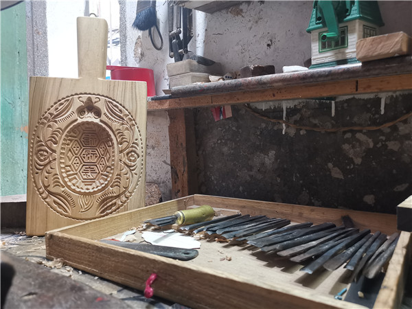 潘海員的匠心作品。東南網(wǎng)記者 盧超穎 攝 面對(duì)日益變化的市場(chǎng)需求,潘海員在傳承祖輩技藝的基礎(chǔ)上不斷創(chuàng)新、求新求變。從畫(huà)紙上的涂涂畫(huà)畫(huà),到下刀后的行云流水,潘海員設(shè)計(jì)刻畫(huà)出了更多寓意深刻的代表性花紋,如魚(yú)、銅錢、蘭花等。同時(shí),他還應(yīng)對(duì)市場(chǎng)需求,設(shè)計(jì)推出了十二生肖月餅和心形月餅等造型各異的模具,不少閩南地區(qū)的酒店慕名而來(lái)批量訂購(gòu)。來(lái)自港澳臺(tái)地區(qū)和東南亞的客商、游客更是常常上門訂購(gòu),龜糕印因此從小小的工作室走出國(guó)門,帶著中國(guó)傳統(tǒng)文化傳播到世界各地。 承載鄉(xiāng)愁 找尋傳承人讓老手藝延續(xù)