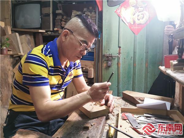 潘海員刻制龜糕印。 東南網(wǎng)記者 盧超穎 攝 潘海員的工作室位于廈門市思明區(qū)中山路南轎巷,七八平方米的屋子里擺滿了大大小小的龜糕印。在祖輩傳下來(lái)的色澤發(fā)亮的老木桌上,只見(jiàn)潘海員手里的刻刀上下翻飛,刀起刀落,樟木特有的清香四溢,一只活靈活現(xiàn)的“龜”就在刀下慢慢呈現(xiàn)。 潘海員祖籍安溪,他的太祖父潘儀一輩就開(kāi)始從事龜糕印雕刻,祖父潘乾帶著這門手藝落戶廈門。在潘海員只有3、4歲的時(shí)候,祖父就將他帶在身邊。“爺爺口袋里總揣著2分錢買來(lái)的12顆糖珠,只要待在他身邊,看他刻制龜糕印,就能有糖吃?!睆男〉亩δ咳竞妥娓傅难普T,讓潘海員對(duì)龜糕印有了不一樣的情感。 1979年,高中畢業(yè)的潘海員開(kāi)始跟著父親專職學(xué)做龜糕印。為了讓潘海員拿穩(wěn)刻刀、扎實(shí)基礎(chǔ)功,光是打洞磨邊,父親就讓潘海員學(xué)了三年。之后的三年時(shí)間里,潘海員一邊給父親打下手,一邊學(xué)習(xí)刻制月餅?zāi)>吆妄敻庥 ?/p> “龜糕印一面是‘龜’,一面是‘壽桃’。剛開(kāi)始學(xué)的時(shí)候,總是把握不住下刀的深度,常常把兩面刻穿。”直到1985年,潘海員才完整地刻出了人生中第一把龜糕印。 回憶起當(dāng)時(shí)的場(chǎng)景,潘海員眼里仍閃爍著光。潘海員說(shuō),學(xué)習(xí)刻龜糕印看起來(lái)容易,其實(shí)并不簡(jiǎn)單。剛開(kāi)始學(xué)的那幾年,手不是被木槌砸到,就是被刻刀扎傷。最多的時(shí)候,雙手被刻刀扎了十幾個(gè)洞。雖然日復(fù)一日的雕刻學(xué)起來(lái)很枯燥,但他卻從未想過(guò)放棄。 現(xiàn)在,年近六旬的潘海員仍時(shí)不時(shí)拿出他的“處女作”把玩,一邊向旁人展示,一邊笑說(shuō),“現(xiàn)在來(lái)看,當(dāng)時(shí)確實(shí)刻得十分粗糙,但我舍不得扔掉,當(dāng)時(shí)刻制完成后的自豪和成就感,我這一輩子都記得?!?/p> 固守初心 堅(jiān)持手工雕刻更有生命力