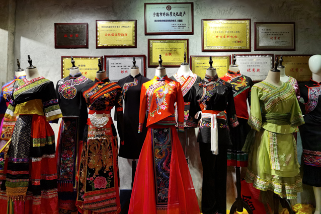 閩東畬族服飾上的特有標(biāo)志。東南網(wǎng)記者葉伏國 攝 采訪中,林章明告訴記者,從目前行業(yè)的市場前景來看,傳統(tǒng)畬族服飾的商業(yè)化之路還很長,只有讓技藝產(chǎn)品有市場生存發(fā)展空間,才能繼續(xù)“活在民間”。 “古老的服飾元素不僅存在于古籍里、教科書里和零散的民間藝人手里,它經(jīng)過加工提煉,同樣能煥發(fā)生機(jī)?!睂?duì)于閩東畬族傳統(tǒng)服飾面臨的困境,中國人民大學(xué)副教授高永安認(rèn)為,非遺傳承人要在民族服飾上有創(chuàng)新和發(fā)展,就要多深入民間,在過去的資料中發(fā)掘文化遺產(chǎn),要把民族服飾推廣在地域文化生活上,讓本地人喜歡穿、喜歡用。同時(shí),傳承人要在文創(chuàng)方面多下功夫,制作紀(jì)念品、旅游用品、與民俗相關(guān)的服飾用品,采用商業(yè)運(yùn)作模式,把民族服飾推出去。