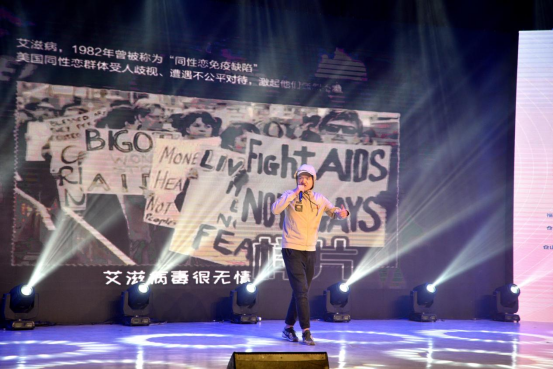 嘻哈歌手茶童生動(dòng)演繹一段“防艾”RAP《咨詢處》,贏得觀眾熱烈掌聲。