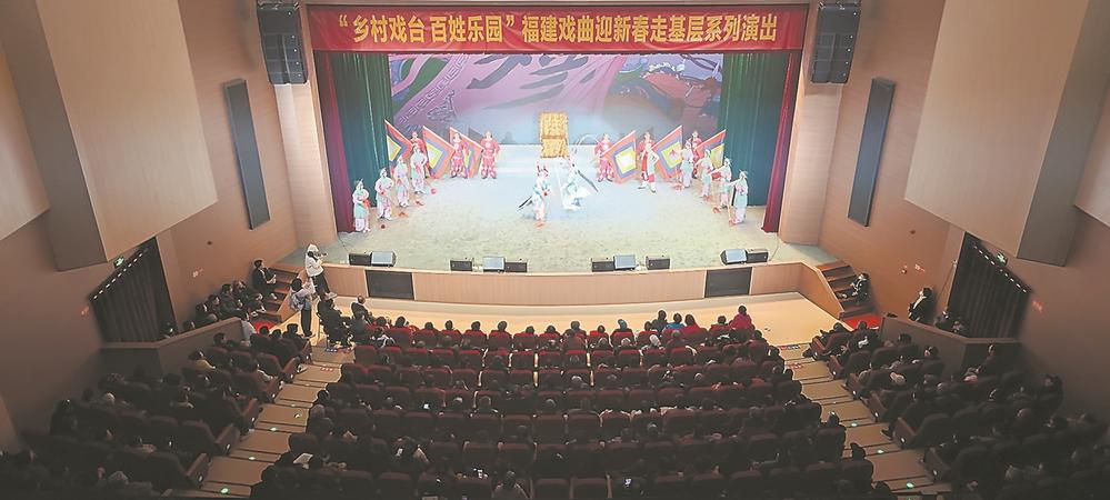 洋下村文化藝術(shù)中心的硬件條件不輸城市劇場。 本報(bào)記者 郭斌 攝 “南師奔塞北,粉黛英姿膽氣豪;兵鋒指幽燕,掃穴雷霆奏凱歌?!?日晚,福州市長樂區(qū)古槐鎮(zhèn)洋下村,村里的文化藝術(shù)中心座無虛席,連走廊都擠滿村民。福建省實(shí)驗(yàn)閩劇院在這里火爆開演傳統(tǒng)經(jīng)典閩劇《大破天門陣》,引來全場觀眾陣陣喝彩。 當(dāng)晚,由省委宣傳部指導(dǎo)、省文旅廳主辦的“鄉(xiāng)村戲臺(tái) 百姓樂園”福建戲曲迎新春走基層系列演出在全省各地同步啟動(dòng)。鄉(xiāng)村戲臺(tái),鑼鼓激越,臺(tái)上演員演得投入,臺(tái)下村民看得入迷。 “省實(shí)驗(yàn)閩劇院作為全國地方戲創(chuàng)作演出重點(diǎn)院團(tuán)和省屬院團(tuán)里唯一的地方戲院團(tuán),每到節(jié)假日,都是我們演職人員最忙碌的時(shí)候。”省實(shí)驗(yàn)閩劇院院長、全國人大代表、文華表演獎(jiǎng)和梅花獎(jiǎng)得主周虹告訴記者,雖然不能與家人團(tuán)聚,但能為基層老百姓送上文化大餐,看到他們的笑臉,聽到他們的掌聲,感受到他們的歡樂,“我們的一切辛苦都值得,都開心”。 結(jié)束洋下村的演出,演職人員共同拆臺(tái)裝車,4輛貨車、1輛大巴、1輛中巴駛回省實(shí)驗(yàn)閩劇院已是凌晨。2日他們又趕赴長樂區(qū)鶴上鎮(zhèn)下余村,為當(dāng)?shù)卮迕駧ソ?jīng)典保留大戲《梅玉配》。 不只在長樂區(qū),元旦當(dāng)天,福州閩劇藝術(shù)傳承發(fā)展中心在永泰龍巖寺演出國家藝術(shù)基金資助大戲——閩劇《過崖記》,省莆仙戲劇院有限公司在莆田市荔城區(qū)黃石鎮(zhèn)上演《三姓奇緣》,云霄縣潮劇傳承保護(hù)中心在云霄縣下河鄉(xiāng)鳳興村演出潮劇經(jīng)典折子戲?qū)觥?/p> 此次福建戲曲迎新春走基層系列演出,將從元旦延續(xù)到2月24日(農(nóng)歷正月十五)。55天里,我省將發(fā)動(dòng)組織各類戲曲藝術(shù)表演團(tuán)體走進(jìn)廣袤田野,為鄉(xiāng)村群眾提供數(shù)量更多、質(zhì)量更優(yōu)的經(jīng)典大戲、新創(chuàng)劇目、新編小戲以及有豐富戲曲元素的綜藝演出,弘揚(yáng)中華優(yōu)秀傳統(tǒng)文化,培育文明鄉(xiāng)風(fēng),豐富節(jié)日文化產(chǎn)品供給,讓更多農(nóng)民群眾和返鄉(xiāng)探親群體在家門口就能看到鄉(xiāng)村“春晚”大戲,營造歡樂吉祥、溫暖和順的節(jié)日氛圍。同時(shí),以文促旅,以旅彰文,讓戲曲演出成為“兩節(jié)”做熱鄉(xiāng)村旅游、促進(jìn)文旅消費(fèi)的亮麗風(fēng)景線。 福建現(xiàn)有活態(tài)地方戲曲劇種23個(gè)、戲曲院團(tuán)529家,其中國有院團(tuán)43家、民營劇團(tuán)486家。剛剛過去的2023年,全省國有文藝院團(tuán)進(jìn)鄉(xiāng)村演出超4200場、觀演人數(shù)超200萬人次,相比2022年增幅明顯。 “當(dāng)前,我省許多鄉(xiāng)村對(duì)戲曲演出的需求十分旺盛,閩劇、高甲戲、歌仔戲(薌?。?、莆仙戲、潮劇等劇種‘兩節(jié)’期間在農(nóng)村市場的演出可以用‘火爆’來形容?!笔∥穆脧d相關(guān)負(fù)責(zé)人告訴記者,今年全省地方劇種公益性演出專項(xiàng)經(jīng)費(fèi)將繼續(xù)投入超過1850萬元,支持54家地市國有文藝院團(tuán)以及部分優(yōu)秀民營院團(tuán)開展不少于2600場惠民演出。同時(shí),繼2023年推動(dòng)各地試點(diǎn)建設(shè)提升200多個(gè)鄉(xiāng)村戲臺(tái)之后,今年將再支持建設(shè)40多個(gè)鄉(xiāng)村戲臺(tái),因地制宜建設(shè)一批接地氣、有特色、見實(shí)效的鄉(xiāng)村戲臺(tái),推動(dòng)鄉(xiāng)村優(yōu)秀傳統(tǒng)文化的活化利用和創(chuàng)新發(fā)展。(本報(bào)記者 郭斌) |