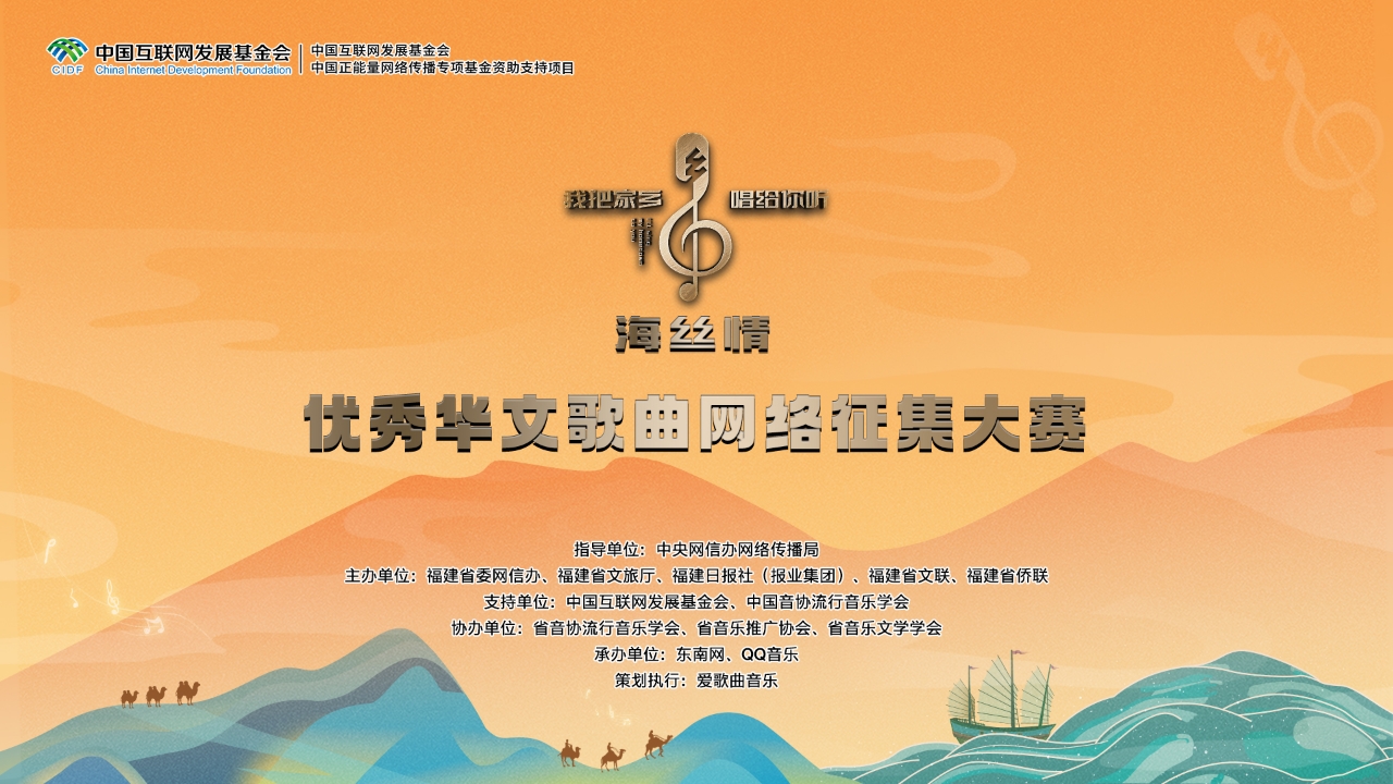 日前,由中央網(wǎng)信辦網(wǎng)絡(luò)傳播局指導(dǎo),福建省委網(wǎng)信辦、福建省文旅廳、福建日報社(報業(yè)集團(tuán))、福建省文聯(lián)、福建省僑聯(lián)等主辦的“海絲情·我把家鄉(xiāng)唱給你聽”優(yōu)秀華文歌曲網(wǎng)絡(luò)征集大賽正式啟動,傳承絲路精神,弘揚絲路文化?;顒拥玫搅酥袊ヂ?lián)網(wǎng)發(fā)展基金會中國正能量網(wǎng)絡(luò)傳播專項基金資助支持。 “海絲情·我把家鄉(xiāng)唱給你聽”優(yōu)秀華文歌曲網(wǎng)絡(luò)征集大賽,以音樂為紐帶,將面對華人、華僑音樂愛好者群體和沿線國家音樂唱作人,通過網(wǎng)絡(luò)的方式征集、展播、評審優(yōu)秀音樂作品和線下采風(fēng)、研討、頒獎活動,增強(qiáng)“一帶一路”沿線國家音樂唱作人原創(chuàng)音樂創(chuàng)作的交流,為音樂人搭建起一座通往世界的廣闊舞臺,為網(wǎng)民展示一個多樣化的全球視聽盛宴。