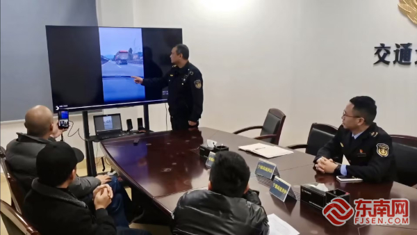 執(zhí)法員對駕駛員進行宣傳教育 接到舉報后,一大隊執(zhí)法人員迅速響應(yīng),啟動案件核查程序,調(diào)取事發(fā)路段監(jiān)控視頻,鎖定涉事車輛閩C9***5貨車。執(zhí)法人員第一時間聯(lián)系駕駛員李某,要求其前往寧德北收費站交通執(zhí)法辦公樓配合調(diào)查。經(jīng)詢問,駕駛員李某承認(rèn),運輸煤炭從寧德漳灣至鹽田途中,因篷布捆扎不嚴(yán),導(dǎo)致部分煤炭顆粒從縫隙中抖落至路面。