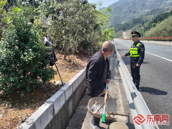 耐心勸離群眾 當日11時許,壽寧中隊執(zhí)法人員執(zhí)行例行巡查時發(fā)現(xiàn)異常情況:在高速公路上行方向應(yīng)急車道內(nèi),數(shù)名手持祭掃物品的村民正四處張望等待車輛。執(zhí)法人員立即下車查看具體情況,經(jīng)現(xiàn)場詢問得知,該群體為附近村民,祭掃結(jié)束后為圖便利,擅自穿越防護網(wǎng)進入高速公路意圖攔乘過路車輛返鄉(xiāng)。