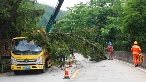 工作人員將傾斜路樹分段切割并運(yùn)離 此次行動共投入14人,調(diào)配油鋸、養(yǎng)護(hù)車、高空作業(yè)車等機(jī)械設(shè)備協(xié)同作業(yè)。下一步,該分中心將繼續(xù)加強(qiáng)對管養(yǎng)路段的路樹養(yǎng)護(hù)管理,定期進(jìn)行修剪,確保公路的安全暢通和美觀整潔,全力保障汛期道路安全。 |