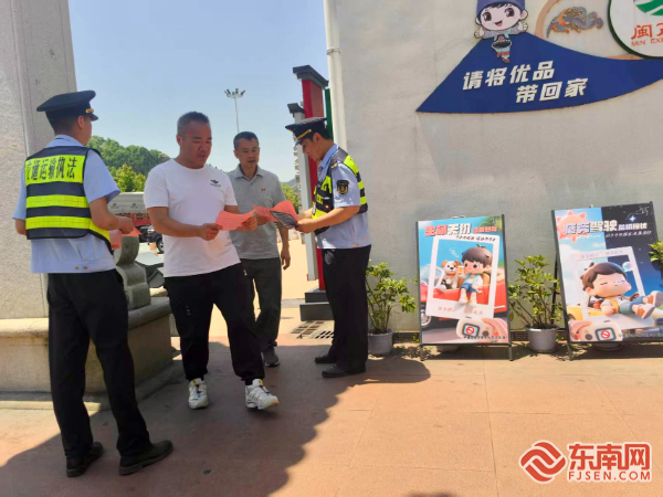 依托收費站開展“安全隨行”流動宣傳。寧德高速執(zhí)法支隊供圖 站點倡導(dǎo),共守文明。依托收費站開展“安全隨行”流動宣傳,執(zhí)法人員結(jié)合夏季行車特點,向駕駛員講解違法停車、拋灑滴漏、疲勞駕駛等行為的危害,發(fā)放印有愛路護(hù)路標(biāo)語的車載應(yīng)急包、挪車電話牌等實用物品。針對沿線村民,主動走訪講解“隔離柵內(nèi)放牧”、“橋下堆積雜物”等行為的法律后果,并聯(lián)合村委設(shè)立“護(hù)路安全監(jiān)督員”,構(gòu)建群防群治網(wǎng)絡(luò)。