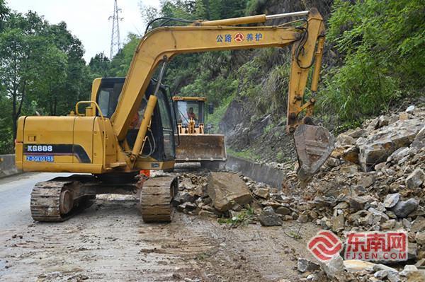 7月21日晚,省道308線沙縣區(qū)長紅村路段發(fā)生山體崩塌,石塊影響道路安全通行。 東南網(wǎng)7月23日訊(通訊員 徐紫瑩)近日,短時強降雨突襲沙縣區(qū),落石、倒伏樹木占據(jù)多處路面,影響通行安全。三明市公路事業(yè)發(fā)展中心沙縣分中心全體職工晝夜不息,在暴雨與險情中展開與時間的競速賽。 7月21日傍晚,一陣強降雨剛剛過去,高砂公路站職工在國道205線龍江村路段發(fā)現(xiàn)倒伏樹木,占據(jù)半幅路面。他們披上雨衣、提起油鋸便沖入雨中,不顧大風(fēng)掀起的雨衣和沾滿鋸末的臉頰。經(jīng)過半小時疾速清理,他們將道路安全隱患清除。 當晚9時許,在省道308線長紅村路段,隨著一聲巨響——約300m3土石轟然傾瀉,石塊攔住了過往群眾的通行道路,現(xiàn)場車隊排起長龍。大洛公路站站長林新清到達現(xiàn)場后,安排專人觀察邊坡穩(wěn)定情況,并組織人員對現(xiàn)場進行安全布控。鏟車就位后立即開展清理落石工作,在各方配合下,近兩小時緊張作業(yè)后,該路段恢復(fù)通行狀態(tài)。