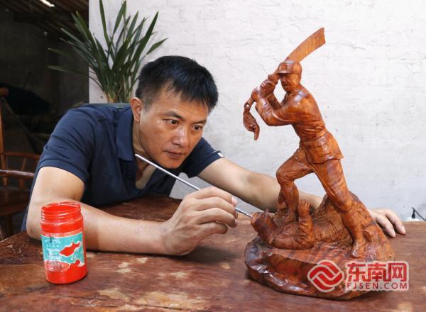 陳金瑞木雕創(chuàng)作 東南網8月14日訊(通訊員 陳文華 文/圖)8月13日,在興化府歷史文化街區(qū)非遺一條街傳承非遺雕塑工作室,福建省工藝美術名人、莆田工藝美術大師陳金瑞以刀為筆、以木作紙,經過長達6個月的精心雕琢,創(chuàng)作完成“抗戰(zhàn)木雕”作品《大刀向鬼子們的頭上砍去》《走向勝利》,以此深情紀念中國人民抗日戰(zhàn)爭暨世界反法西斯戰(zhàn)爭勝利80周年。 據(jù)悉,莆田木雕是中國木雕四大名雕之一,2011年5月被列入國家級非物質文化遺產名錄?!坝闷翁锬镜襁@種永恒的藝術形式來記載抗戰(zhàn)故事,讓大家在欣賞藝術作品中銘記歷史,緬懷先烈,感受家國情懷,珍惜來之不易的和平生活?!标惤鹑鸾榻B,此次兩件“抗戰(zhàn)木雕”作品,充分運用莆田木雕精湛細膩的傳統(tǒng)技藝融合現(xiàn)代雕塑等元素,用傳承的刻刀訴說著中華民族無數(shù)優(yōu)秀兒女,在中國共產黨的領導下,舍生忘死、英勇無畏、可歌可泣的抗戰(zhàn)故事。 在選材上,兩件“抗戰(zhàn)木雕”作品選用上等涯柏木和臺灣檜木,細節(jié)刻畫入微,氣勢雄渾磅礴。其中,作品《大刀向鬼子們的頭上砍去》以極具張力的構圖和凌厲的刀法,定格了抗日將士揮舞大刀奮勇劈殺敵人的震撼瞬間,令人血脈僨張;而作品《走向勝利》則通過軍人揮舞飄揚軍旗、目光堅毅、腳步堅定前行的塑造,生動展現(xiàn)了中華民族不屈不撓、勇往直前的精神風貌。 陳金瑞創(chuàng)作這些作品,還源于深厚的個人情感。他透露:“父親是一名退役軍人,我從小就崇拜軍人,他們身上那種不怕犧牲、英勇頑強、保家衛(wèi)國的鋼鐵意志一直激勵著我在從藝道路上不斷前行?!?/p> 下一步,陳金瑞還計劃以“軍魂”為主題開展系列創(chuàng)作,在中國人民解放軍建軍100周年之際,舉辦《??招l(wèi)士王偉雕像》《寸土不讓》等紅色木雕專題展,用藝術作品傳播社會正能量,營造尊崇軍人、尊重退役軍人良好風尚。 |