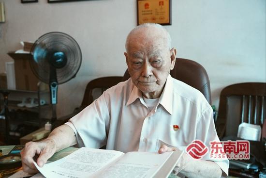李祖景至今保留著閱讀的習(xí)慣。 東南網(wǎng)記者 杜志鑫 攝 從戰(zhàn)線到書業(yè):以篤行續(xù)紅色初心 1945年8月15日,日本宣布無條件投降,抗日戰(zhàn)爭迎來正義勝利,但李祖景的步伐并沒有就此停下,他積極發(fā)展一批批革命群眾,投身泉州中心縣委開展的多項(xiàng)革命工作。李祖景既以交通員身份為潛伏戰(zhàn)友送情報(bào)、傳敵情,又隨部隊(duì)進(jìn)軍解放官橋,并配合參與安海、水頭的解放戰(zhàn)爭。 1949年10月,晉江地委組織部將李祖景派去參與籌建泉州新華書店。彼時(shí)泉州剛解放,廣大群眾渴求了解革命思想,黨也亟需通過書刊傳播馬列主義、毛澤東思想與黨的方針政策。他與另外8名籌建人員晝夜不休,修繕布置書店門市部,并請回印刷技工和排版師傅,陸續(xù)發(fā)行了《共產(chǎn)黨宣言》《中國革命和中國共產(chǎn)黨》等革命圖書。這些書籍很快供不應(yīng)求,大家受到新鮮深刻的革命教育。 “社會(huì)風(fēng)氣煥然一新,日子慢慢變好,大家對生活也更有信心了,這就是書籍的力量?!被貞浧甬?dāng)時(shí)的場景,李祖景仍難掩激動(dòng)。1950年5月起,李祖景受命籌建石獅、安海、青陽新華書店,此后數(shù)十年,他將半生心血投入這一事業(yè)。熱愛讀書的他始終踐行“活到老、學(xué)到老”,家里床頭、書桌、櫥架等地常年放滿了書籍,即使到了96歲,他還保持著每日閱讀的習(xí)慣。李祖景好學(xué)不倦、嚴(yán)謹(jǐn)踏實(shí)的作風(fēng),也滋養(yǎng)了良好家風(fēng),在鄰里間傳為美談。 如今身處和平盛世,可戰(zhàn)火歲月的苦痛,李祖景始終沒忘,“日本人欺負(fù)我們中國,那個(gè)罪惡太大了,講也講不完……”談及日軍對百姓的殘暴傷害,他的聲音一度哽咽?!岸嗌偃藶榱丝箲?zhàn)勝利流血犧牲,為了解放事業(yè)奉獻(xiàn)青春,我們不能忘了他們?!苯甏蟛〕跤?,他便著手整理回憶錄,將一生征程及所作的雜文和詩聯(lián)整理起來,從文字撰寫到校對排版,他都一絲不茍,哪怕行動(dòng)不便,也堅(jiān)持逐字逐句核對,最終匯成《歲月痕文集》《辛怡齋詩聯(lián)稿續(xù)集》兩卷書稿出版,這些文字,為泉州抗戰(zhàn)史研究提供了珍貴的一手素材。 “大刀向日本鬼子頭上砍去,全國抗戰(zhàn)的日子來到了,前面勇敢義勇軍,后面有勇敢的老百姓……”采訪接近尾聲,李祖景再次唱起記憶中的抗戰(zhàn)歌曲。微風(fēng)穿過窗臺,拂過書桌上的回憶錄,吹起一頁頁書卷,也將這名老同志的傳奇人生輕輕鋪展。 近日,泉州市領(lǐng)導(dǎo)看望慰問抗戰(zhàn)老戰(zhàn)士老同志代表,其中就有李祖景,當(dāng)一行人為他頒發(fā)“中國人民抗日戰(zhàn)爭勝利80周年”紀(jì)念章,并向他表示敬意時(shí),李祖景緩緩站起身,挺直脊背,立定身體,認(rèn)真地敬了個(gè)禮。這個(gè)動(dòng)作穿越八十余載時(shí)光,仿若是如今的他,向當(dāng)年那個(gè)在街巷里念著童謠的少年,傳去了一份鄭重的回應(yīng)。 |