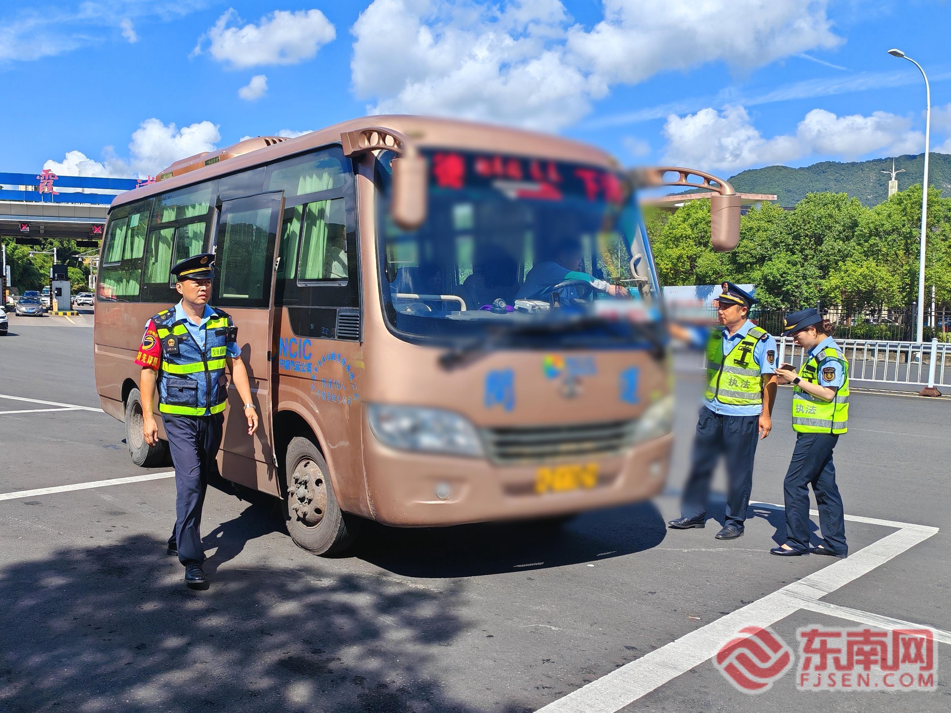 執(zhí)法檢查。寧德高速執(zhí)法支隊供圖 此次執(zhí)法行動中,中隊累計開展執(zhí)法檢查6次,共檢查各類車輛50部,查處違規(guī)車輛6部。執(zhí)法數(shù)據(jù)顯示,道路客運車輛“不按規(guī)定站點??俊奔坝纱艘l(fā)的“超員載客”問題,成為此次假期查處的主要違規(guī)類型。例如在10月8日,執(zhí)法人員就查獲一輛閩J*****牌照的線路班車,該車駕駛員因一名學生趕時間而允許其站外上車,不僅構(gòu)成違規(guī)停靠,還導致車輛超員1人,暴露出部分駕駛員在特定情境下存在的僥幸心理和安全意識松懈。