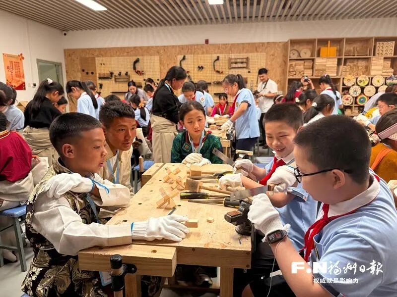 兩地青少年一同體驗(yàn)?zāi)竟ぜ妓?。記?馮雪珠 攝 20日下午,在福州市援藏工作隊(duì)帶領(lǐng)下,西藏八宿縣師生一行37人走進(jìn)福州教育學(xué)院附屬第一小學(xué)(以下簡稱“一附小”),參觀體驗(yàn)此次來榕交流活動(dòng)的第一所學(xué)校。 大巴還未停穩(wěn),來自八宿縣的學(xué)生就迫不及待地掀開車窗簾,露出好奇的眼睛。學(xué)校內(nèi),伴隨著《茉莉花》的歌聲,一附小師生鼓掌熱烈歡迎來自遠(yuǎn)方的客人。 學(xué)習(xí)機(jī)器人編程,觀看無人機(jī)表演,體驗(yàn)陶藝木藝……在一附小,來自八宿縣的中小學(xué)學(xué)生代表與一附小學(xué)生一道,在互動(dòng)活動(dòng)中感受學(xué)校的特色教育理念及教學(xué)模式,收獲滿滿。 “今天是來福州的第一天,這里濕潤的空氣和滿眼的翠綠,與家鄉(xiāng)的遼闊蒼茫是完全不一樣的景致。”來自八宿縣的中學(xué)生洛松貢布說,進(jìn)入校園后,他們立刻被老師和同齡人熱情包圍著。 據(jù)悉,交流活動(dòng)為期9天。接下來,八宿縣師生代表還將參觀體驗(yàn)福州市英才學(xué)校、倉山小學(xué)、金山小學(xué),深度體驗(yàn)福州教育實(shí)踐,還將前往福州市圖書館、福州市科技館、中國船政文化博物館以及三坊七巷、上下杭等地,感受現(xiàn)代福州與閩都文化的魅力。(記者 馮雪珠) |