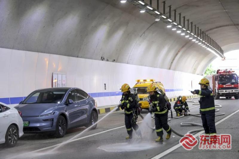 演練模擬現(xiàn)場(chǎng)(廈門(mén)公路中心供圖) 東南網(wǎng)10月29日訊(本網(wǎng)記者 劉瑋 通訊員 林萍)10月28日,2025年廈門(mén)市交通公路綜合應(yīng)急演練暨交通戰(zhàn)備演練在廈門(mén)北站連接線豪巖隧道同安端收官。本次演練由廈門(mén)市交通運(yùn)輸局、同安區(qū)人民政府聯(lián)合主辦,廈門(mén)市公路事業(yè)發(fā)展中心、廈門(mén)市公路橋隧維護(hù)與應(yīng)急中心承辦,同安區(qū)應(yīng)急管理局、同安區(qū)衛(wèi)生健康局、同安區(qū)消防救援大隊(duì)、交警等多家單位協(xié)同參演,通過(guò)多科目實(shí)戰(zhàn)檢驗(yàn),全面錘煉應(yīng)急響應(yīng)與協(xié)同作戰(zhàn)能力。 本次演練緊貼廈門(mén)實(shí)際風(fēng)險(xiǎn)特點(diǎn),設(shè)置三大實(shí)戰(zhàn)化搶險(xiǎn)科目,各環(huán)節(jié)環(huán)環(huán)相扣,場(chǎng)面緊張有序。 在“隧道事故應(yīng)急搶險(xiǎn)救援”科目中,模擬隧道內(nèi)車(chē)輛事故引發(fā)險(xiǎn)情。應(yīng)急隊(duì)伍接到指令后迅速行動(dòng),高效完成人員疏散、火情控制、傷員救治等系列操作?;璋捣忾]的隧道環(huán)境下,救援人員配合默契、動(dòng)作迅捷,展現(xiàn)出過(guò)硬的心理素質(zhì)與專(zhuān)業(yè)救援技能。