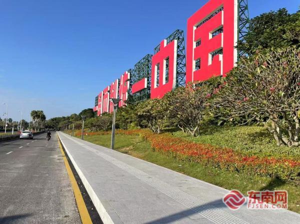 環(huán)島路“一國(guó)兩制 統(tǒng)一中國(guó)”標(biāo)語(yǔ)牌路段人行道完工