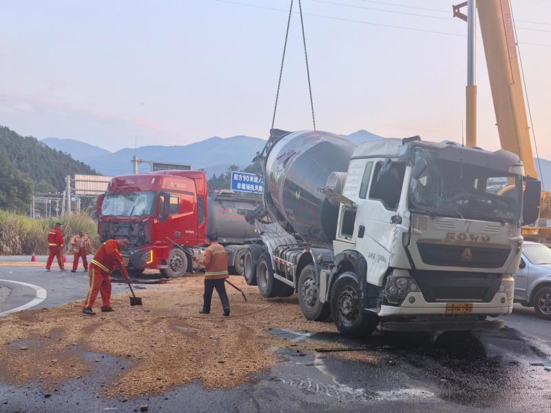東南網(wǎng)12月8日(通訊員 徐紫瑩)12月4日下午4時,在沙縣區(qū)X7B4線南陽互通口路段突發(fā)一起交通事故,導(dǎo)致水泥和機油污染路面近300米,污染面積達(dá)500平方米。事故發(fā)生時,三明市公路事業(yè)發(fā)展中心沙縣分中心城關(guān)公路站的職工正在附近開展日常養(yǎng)護(hù)工作,聽到事故發(fā)生的動靜,立即朝著聲音來源地趕去。