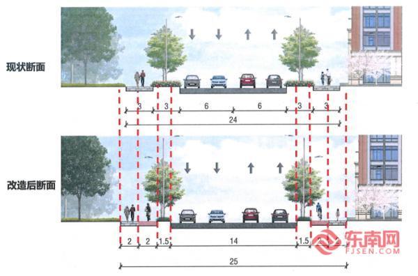 項(xiàng)目改造斷面示意圖(廈門公路中心供圖) 在核心改造內(nèi)容上,項(xiàng)目將原12米寬的機(jī)動車道拓寬至14米,由單向一車道半升級為標(biāo)準(zhǔn)單向兩車道;同時通過增設(shè)右轉(zhuǎn)專用道、優(yōu)化交叉口標(biāo)線渠化及信號燈控制等措施,提升通行效率。慢行系統(tǒng)方面,將增設(shè)獨(dú)立非機(jī)動車道,整體拓寬至4—4.5米,重點(diǎn)加寬居民區(qū)附近路段,保障通行連續(xù)性與舒適度。此外,工程還將統(tǒng)籌推進(jìn)行道樹遷移、植被優(yōu)化、綠化景觀提升,同步更新升級路燈與交通設(shè)施設(shè)備,實(shí)現(xiàn)道路功能與生態(tài)景觀雙重提升。 據(jù)了解,市交通局公路中心在項(xiàng)目前期開展了現(xiàn)場調(diào)研、方案審查、初步設(shè)計(jì)審查及施工圖評審等工作,并結(jié)合地鐵3號線南延段工程恢復(fù)方案,梳理問題成因后確定最終改造方案。目前工程已進(jìn)入施工階段,交通公路部門溫馨提醒,過往車輛請減速慢行,注意通行安全。 |
