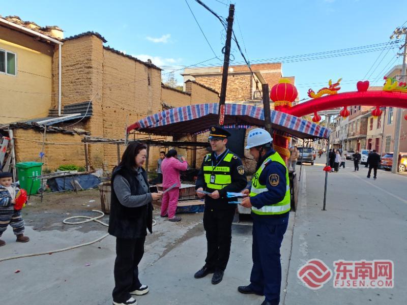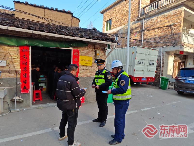 執(zhí)法人員在曹爐村發(fā)放宣傳單。寧德高速公路行政執(zhí)法支隊供圖
