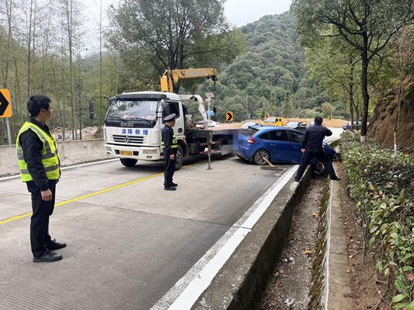 泰寧料坊村路段發(fā)生事故。 東南網(wǎng)2月26日訊(通訊員 曹曉丹 文/圖)春運(yùn)保暢關(guān)鍵期,泰寧公路分中心加大路面巡查力度,全力保障道路安全暢通。近日,在日常巡查中快速處置一起突發(fā)車禍,全力保障轄區(qū)公路通行安全。 2月25日上午8點(diǎn),料坊公路站巡路人員沿G528大田路段巡路時(shí),發(fā)現(xiàn)料坊村路段發(fā)生事故,一事故車輛占用主行車道右側(cè),且位于彎道,存在二次事故風(fēng)險(xiǎn)。巡路人員立即啟動(dòng)春運(yùn)應(yīng)急處置預(yù)案,按照“安全防護(hù)優(yōu)先、快速清理保通”原則,迅速在事故現(xiàn)場(chǎng)150米外布設(shè)反光錐筒、警示標(biāo)志,劃定安全作業(yè)區(qū)域,同步引導(dǎo)后方車流減速分流。