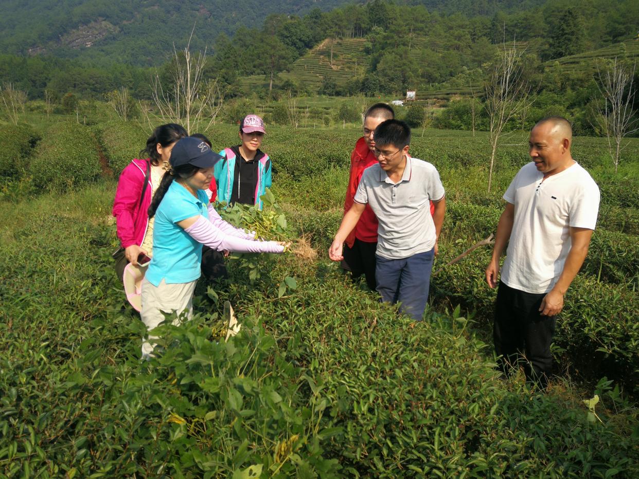 廖紅教授和團(tuán)隊(duì)成員在武夷山燕子窠生態(tài)茶園查看茶樹(shù)生長(zhǎng)情況。(受訪對(duì)象供圖)