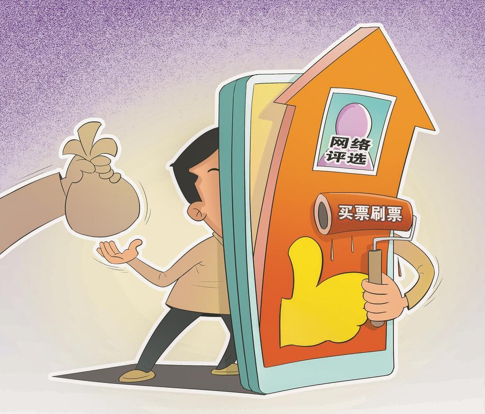 近日,網(wǎng)絡(luò)評(píng)選買(mǎi)票刷票亂象引發(fā)關(guān)注。學(xué)校、公司等各方面發(fā)起的網(wǎng)絡(luò)評(píng)選,本意是將“民意”納入評(píng)價(jià)標(biāo)準(zhǔn),卻催生出拉票大戰(zhàn)、刷票亂象,成為數(shù)字造假游戲。這不僅失去了評(píng)選本身的意義,更給參與者帶來(lái)心理負(fù)擔(dān)、經(jīng)濟(jì)壓力以及信息泄露風(fēng)險(xiǎn)。讓評(píng)選回歸專業(yè)與誠(chéng)信,主辦方須摒棄“唯票數(shù)”的懶惰規(guī)則,引入專業(yè)評(píng)審、區(qū)塊鏈存證等技術(shù),并建立黑名單,一次刷票終身禁賽;監(jiān)管部門(mén)應(yīng)提高違法成本,形成震懾;用戶也要摒棄“人情票”“紅包票”,敢于對(duì)拉票鏈接說(shuō)不。(朝陽(yáng)/文 王琪/圖)