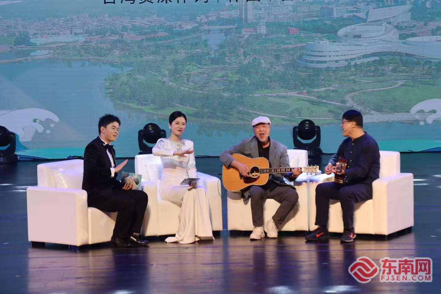 頒獎現(xiàn)場,臺灣著名音樂人、《把根留住》詞作者黃慶元講述尋根故事。東南網(wǎng)記者 盧金福 攝