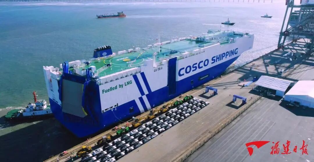 國產(chǎn)新能源汽車從廈門出口。福建日?qǐng)?bào)報(bào)業(yè)集團(tuán)記者 林梓健 攝