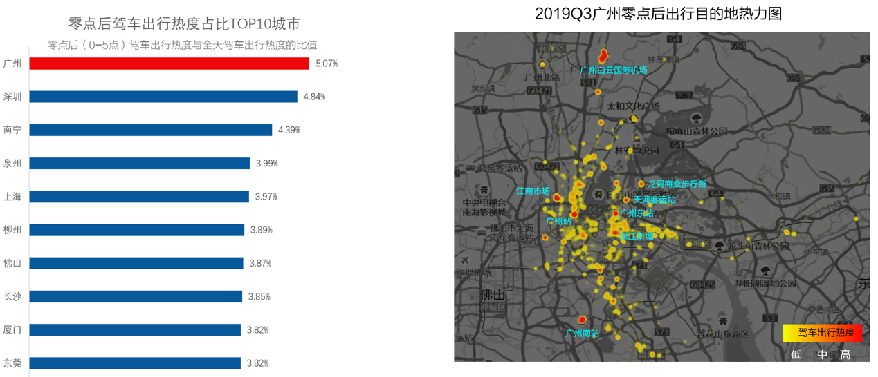 如果按城市規(guī)模來分,深圳是超大城市假日夜經(jīng)濟(jì)漲幅最大城市,特大城市是武漢,西安和東莞分別在Ⅰ型、Ⅱ型大城市排名第一。 陪你吹吹夜晚海風(fēng) 華南城市深夜愛自駕 夜幕降臨,是誰更愛自駕出行?高德地圖三季度報(bào)告分別統(tǒng)計(jì)了國內(nèi)50個(gè)主要城市用戶零點(diǎn)后駕車出行熱度、夜間出行里程占全天的比例,反映各個(gè)城市夜間駕車出行活躍度。 結(jié)果顯示,廣州是零點(diǎn)后駕車出行熱度占比最高的城市,東莞則是夜間出行里程占比最高的城市。兩個(gè)榜單的前三名中,只有唐山一個(gè)北方城市位列夜間出行熱度榜季軍。也許華南相對(duì)濕潤溫暖的氣候,讓人更愛在夜間駕車出行。