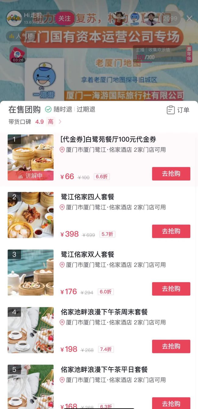 助力文旅復(fù)蘇,相約詩意廈門,助力廈門文旅復(fù)蘇,推介廈門本土品牌,廈門國有資本運營有限公司聯(lián)合旗下廈門旅游集團、廈門輪渡廈門鷺江賓館、廈門灣等于今日11:00-15:00在抖音舉辦廈門旅游專場直播。 ![]() 國有資本運營公司作為廈門旅游全要素集成者,旗下匯聚了碼頭、海上客運、海上旅游、臨港商業(yè)、品牌酒店、集散中心、智慧平臺等旅游全部業(yè)態(tài),直播現(xiàn)場連線資本運營公司旗下子公司,介紹具有廈門特色的旅游產(chǎn)品。 ![]() ![]() 起源于鷺江賓館的鷺江·佲家在這次直播中為大家?guī)硭娜颂撞?、雙人套餐、佲家池畔浪漫下午茶周末套餐等優(yōu)惠團購,還有更多精彩文旅好物在直播間等你! ![]() A萌君還了解到中國首部以華僑家國情懷為主題,以廈門文化為核心的大型實景360°全沉浸互動演出《廈門喜事》計劃將于2022年春季在廈門國際郵輪中心廈鼓碼頭亮相,觀眾將換上精美華服與才貌雙絕的演員近身互動,感受百年廈門時光,享受視聽盛宴敬請期待哦~ |