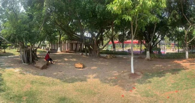 改造后(鋪設(shè)透水磚平臺(tái)并新增原石桌椅) ![]() 改造前