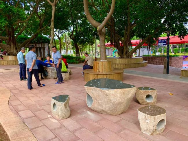 改造后(鋪設(shè)透水磚并加設(shè)原石桌椅) 快約上三五好友逛起來~ |