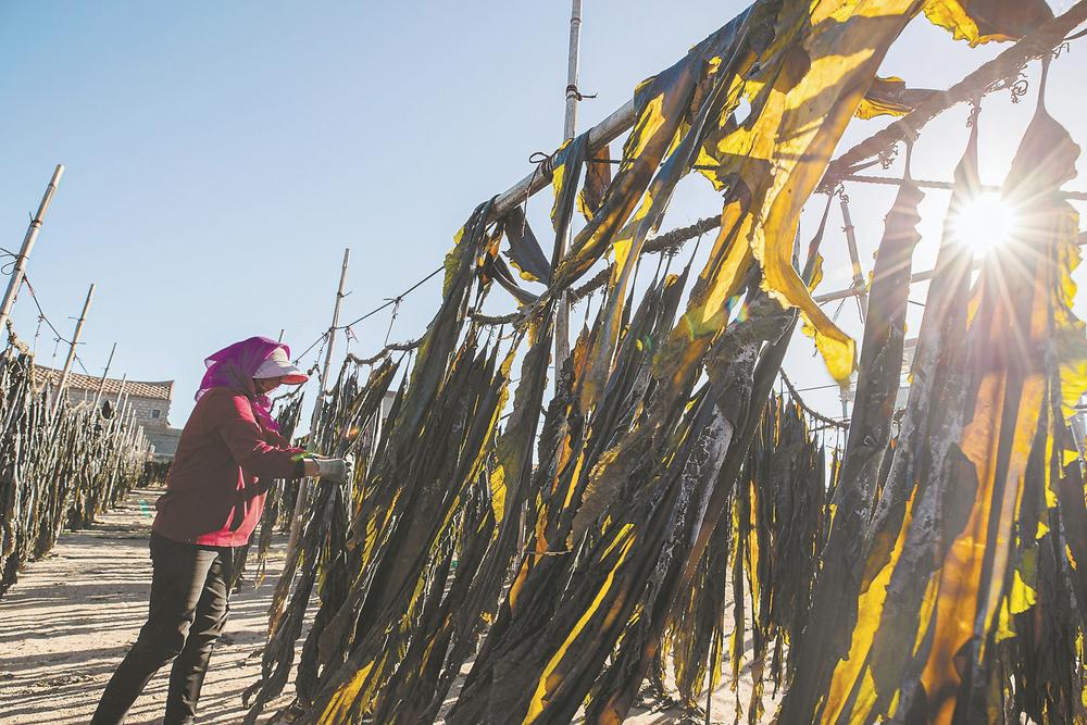 東岱灣海上牧場。 這片海洋牧場,是通過人工魚礁、增殖放流等措施,實(shí)現(xiàn)漁業(yè)資源可持續(xù)利用的人工漁場。 2018年底,南日島海域獲批成為我省首家國家級(jí)海洋牧場示范區(qū)。在7.24平方公里的海域上,南日島投放了約7.39萬立方米礁體構(gòu)件,建設(shè)人工魚礁。 “以人工礁體為框架的海洋牧場有獨(dú)特的生態(tài)系統(tǒng),正默默守護(hù)海洋生態(tài)?!绷种竞檎f道,每一個(gè)構(gòu)件單元就是一個(gè)迷你的海洋世界,可以保護(hù)增殖魚類,修復(fù)局部生態(tài),改善水質(zhì)生態(tài),阻止海底拖網(wǎng)作業(yè)。 給海底生物“安新家”后,南日島在“牧場”中持續(xù)開展底播增殖放流,不斷豐富海洋生物多樣性。 “近3年,我們公司放流了魚、蝦、貝等3億多尾(粒)?!痹谀先諐u云萬村,福建省南日島海洋生物技術(shù)有限公司總經(jīng)理陳珍賜告訴記者,公司被農(nóng)業(yè)農(nóng)村部確認(rèn)為珍稀瀕危水生動(dòng)物——雙線紫蛤的增殖放流苗種供應(yīng)單位。 雙線紫蛤是一種名貴的底棲雙殼貝類,是福建省省級(jí)重點(diǎn)保護(hù)水生野生動(dòng)物。由于過度捕撈,雙線紫蛤資源日益枯竭,南日島海域是目前我國雙線紫蛤野生資源唯一生存的海域。 近年來,南日島共放流雙線紫蛤320萬粒。 南日島加快海上養(yǎng)殖轉(zhuǎn)型升級(jí)。2022年,全鎮(zhèn)18236口傳統(tǒng)養(yǎng)殖漁排,全部升級(jí)為環(huán)保型塑膠養(yǎng)殖漁排或深水大網(wǎng)箱;近5萬畝傳統(tǒng)泡沫浮球,升級(jí)為環(huán)保型塑膠浮球,減少海漂垃圾,改善生態(tài)環(huán)境。 海島山體、沙灘、植被等多種類型的整治修復(fù),水土流失治理,岸灘環(huán)境綜合整治,海岸災(zāi)害防護(hù)與生態(tài)修復(fù),海洋生態(tài)監(jiān)測預(yù)警和防災(zāi)減災(zāi)能力建設(shè)……南日島逐一開展海島“療傷”、岸線修復(fù)工作,正加快補(bǔ)齊生態(tài)短板。 好生態(tài)也慷慨地給予當(dāng)?shù)厝罕姼囵佡?zèng)——2022年,全鎮(zhèn)漁業(yè)產(chǎn)量達(dá)23.38萬噸,產(chǎn)值約53億元,比2012年產(chǎn)值增長超200%。 “接二連三” 追求漁業(yè)更“優(yōu)” 南日鎮(zhèn)萬峰村,一片海灘上竹竿林立,掛曬的墨色海帶在風(fēng)中搖晃,被夕陽逆光打出“五彩斑斕的黑”。 海帶養(yǎng)殖戶魏桂林整理著海帶,臉上露出笑容,“以往是在沙灘上放置網(wǎng)布,直接將海帶鋪在上面曬,今年試著掛曬,效果不錯(cuò)”。 不遠(yuǎn)處的沙灘還有傳統(tǒng)“沙曬”場。女工們正在逐條翻動(dòng)海帶,抖落沙子再捋直?!皰鞎癖容^節(jié)省人工,只需掛上去,干了再收下來。”說起今年的嘗試,魏桂林覺得滿意,“一樣大的曬場能夠掛更多的海帶,能節(jié)省1/3的用地?!?/p> 最重要的是,掛曬的干海帶含沙量少,品質(zhì)更好,價(jià)格也更高。魏桂林決定:“明年全部掛曬?!?/p> 這正是南日鎮(zhèn)政府引導(dǎo)的方向。林志洪表示,為避免因晾曬流失海沙,涵養(yǎng)沙灘,明年起將全面喊停“沙曬”。 靠天吃飯,成本最低,價(jià)值也最低。為減少天氣對(duì)原材料的影響,徹底改變干海帶深加工時(shí)沙子難除盡的問題,南日島上出現(xiàn)了4家大型海帶養(yǎng)殖加工廠,采用鹽漬海帶工藝,改變海帶粗放加工的傳統(tǒng)。