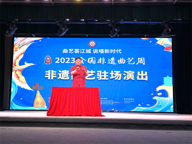 6月9日至15日,由文化和旅游部、湖北省人民政府主辦的“曲藝薈江城 說唱新時代”2023全國非遺曲藝周在武漢隆重舉辦。福建省福州評話、福州伬藝、南平南詞、錦歌、東山歌冊、答嘴鼓、講古等7個曲藝類國家級非遺代表性項目精彩亮相,為江城及全國各地的曲藝同行們獻上一道獨具特色的曲藝盛宴。省文化和旅游廳二級巡視員張立峰、非遺處相關(guān)負責(zé)人參加了開幕式和座談交流會。 6月12日至15日,王素華,黃春慧兩位國家級非遺代表性傳承人領(lǐng)銜的30人福建展演團隊進行了11場展演。團隊進戲院、進校園、進社區(qū)、進景區(qū)、進機關(guān),與當?shù)厝罕娊涣骰?,與全國同行同臺展演,展示福建曲藝水平,傳播福建非遺聲音,贏得滿堂喝彩,受到一致好評。