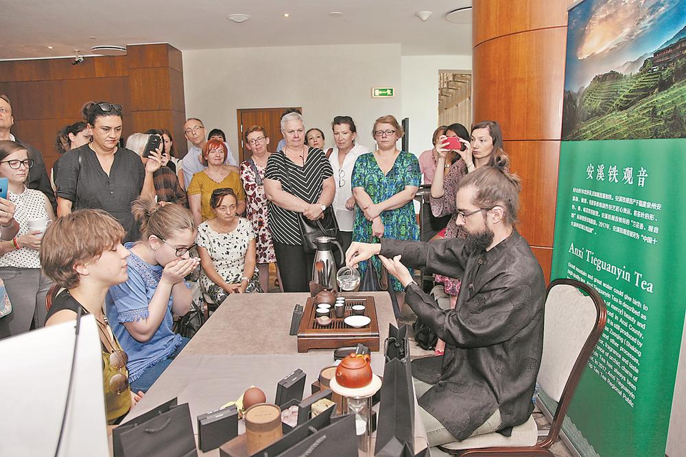 2019年海絲行波蘭站現(xiàn)場,波蘭人展示工夫茶技藝。