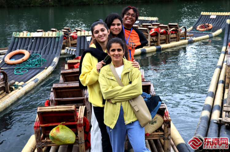 嘉賓體驗九曲溪竹筏漂流。東南網記者 林先昌 攝 點贊武夷山自然之美 武夷山九曲溪被譽為中國最美溪流之一,全長9.5公里,因有三灣九曲之勝,所以取名九曲溪。嘉賓們乘竹筏順流而下,欣賞九曲溪青山碧水,兩岸丹崖林立,千姿百態(tài),大家紛紛點贊。 齊烏盧被武夷山的悠久歷史和文化底蘊所折服,也稱贊著中國古人的智慧?!斑@里的美景給我留下了深刻印象!中國古人利用山水優(yōu)勢來種植茶葉,產生經濟效益,人們也可以享受物美價廉的產品,這令我十分震撼!”他表示,希望在不久的將來,還能夠再次到訪武夷山。 來自阿富汗的留學生AbdulRahmanNuristani是第一次來到武夷山,為其壯麗的景色著迷,“很是震撼,撐著竹筏在水上漂流而過,聽著導游講解歷史,很迷人?!彼贿呎f著,一邊豎大拇指。 武夷山的自然風光獨樹一幟,核心景區(qū)屬丹霞地貌,一條幽深清澈的九曲溪盤環(huán)山中,千百年來,得天獨厚的地理環(huán)境和自然條件,孕育了武夷山舉世稱奇的生物多樣性。 來自巴基斯坦的WaqarSattar對記者說:“今年的海絲茶文化論壇以及相關的活動都給我留下了很深的印象,武夷山的自然風光也很漂亮。在這過程中,讓我有機會學習到中國茶的歷史、價值以及文化內涵,對茶文化知識有所更深的認識,對茶的欣賞能力有所提升。”他說道,中國茶文化是豐富多彩的,源遠流長,可以追溯到數千年前的古代時期。巴基斯坦和中國茶文化是相通的,人與人之間通過茶可以建立聯(lián)系、培養(yǎng)感情,它還具有社交的意義。