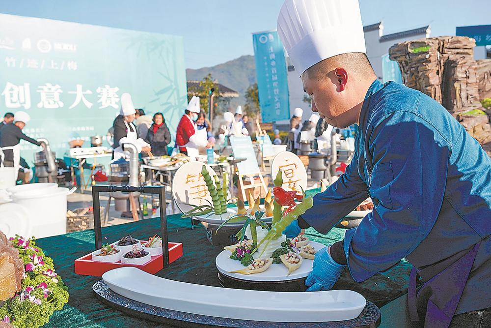 圖為參賽選手在制作筍宴菜品。 1月4日,武夷山市上梅鄉(xiāng)舉辦“筍香竹韻·竹跡上梅”筍竹文化節(jié)。上梅鄉(xiāng)作為省級生態(tài)鄉(xiāng)鎮(zhèn)之一,全鄉(xiāng)筍竹資源豐富,共有竹林面積13.4萬畝。近年來,上梅鄉(xiāng)大力弘揚竹文化,發(fā)展竹產(chǎn)業(yè),積極探索筍竹特色產(chǎn)業(yè)同旅游、鄉(xiāng)村振興融合發(fā)展的新模式。 據(jù)悉,此次活動旨在以筍為媒、以筍會友,挖掘當?shù)靥厣奈幕糜钨Y源,助力鄉(xiāng)村振興。 |