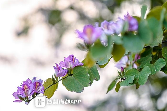 在中國文化中,紅色被視為吉祥、喜慶的象征,代表著熱情、幸福和興旺。因此,紅色的三角梅花可以為家居環(huán)境帶來積極的氛圍,增添生機和活力;從花形來看,三角梅的花朵呈現(xiàn)出鮮明的三角形狀,散發(fā)出活力四溢的氣息。三角形被認為是穩(wěn)固的象征,因此也寓意著事業(yè)穩(wěn)定和家庭和諧。 4.宮粉紫荊:寓意合家團圓,兄弟和睦 宮粉紫荊的花期為1月至3月,果期為8月至9月,花色通常為粉白,市民游客走在安吉路、山海路、豐海路等地段可以看到宮粉紫荊。記者走訪看到,滿樹粉蝶翩飛,如霞成綺,編織出似海似霧的粉色甜夢,讓人驚艷沉醉,故其有“南國櫻花”的美稱。