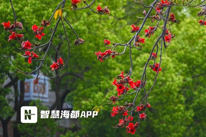 據(jù)泉州市城管局相關(guān)工作人員介紹,早在中世紀,隨著福建泉州海上對外交通的往來,泉州一帶就已種有刺桐。相傳五代十國時期的清源軍節(jié)度使、晉江王留從效為了擴建泉州的城廓,曾經(jīng)環(huán)城遍植刺桐。后來,刺桐生長得花繁葉茂、花紅似火,成為泉州一大特征,泉州也因此而名聞海內(nèi)外。因此,刺桐花成為了泉州的一種標志,被定為泉州市花。如今,都能看到它的影子。 2.木棉花:英雄的象征,譽為英雄樹、英雄花 木棉花的花期在3月至4月,果期為5月,它的花色有紅色的,也有橙紅色的,記者走訪看到,在臨漳門、涂門街、美食街口、豐海路等地,木棉花開正艷。