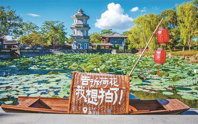 廈門(mén)園博苑,滿(mǎn)塘荷花與烏篷船“相遇”。