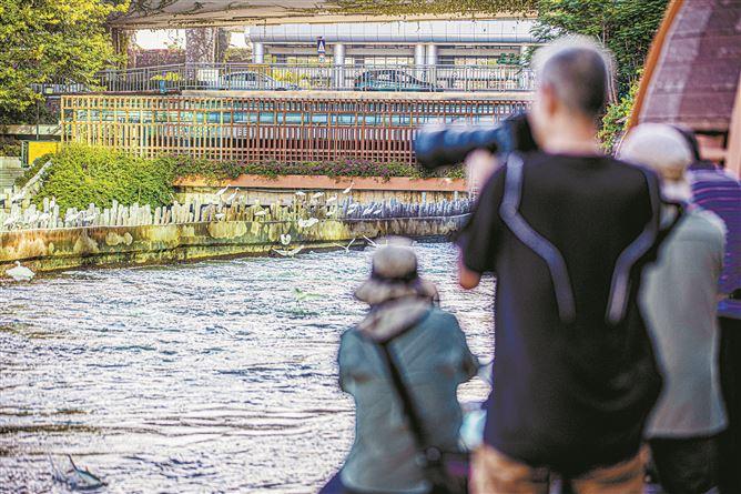 觀(guān)鳥(niǎo)愛(ài)好者在筼筜湖邊拍攝鳥(niǎo)類(lèi)。