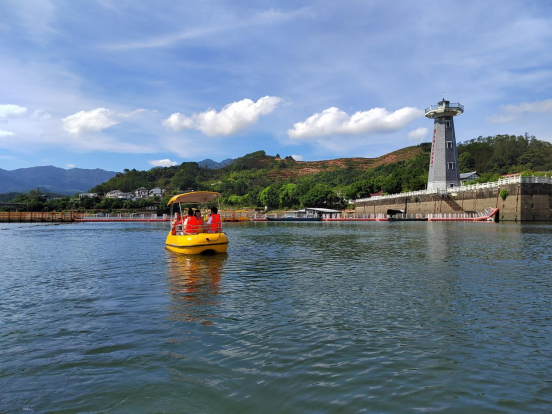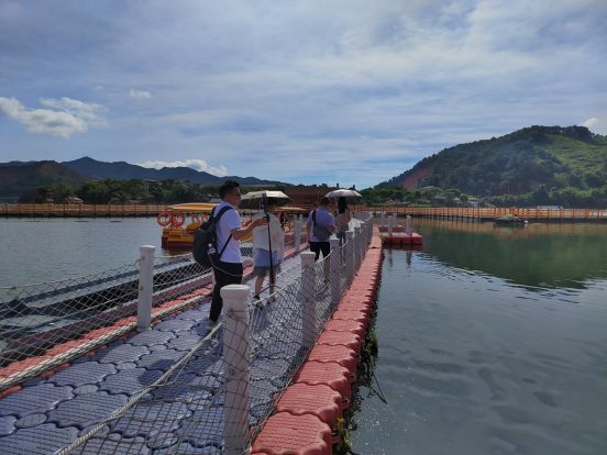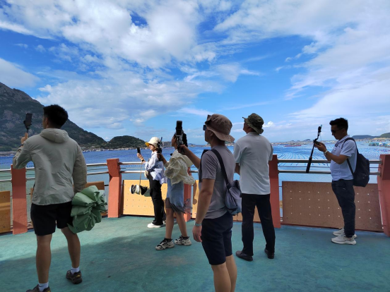 主播團(tuán)在水上觀光垂釣平臺(tái)直播 在水上觀光垂釣平臺(tái),主播們體驗(yàn)了泛江游船的樂趣?!霸谶@里可以遠(yuǎn)眺燈塔,觀賞尤墩村的全貌,還有可供垂釣的小木屋,喜歡釣魚的朋友們一定要來(lái)打卡?!睎|南網(wǎng)主播丁迅為直播間的粉絲推薦道。