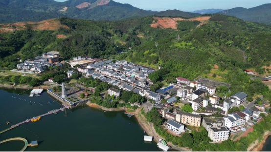 新華村風(fēng)光 東南網(wǎng)周瑞欽 攝 主播們跟隨泮洋鄉(xiāng)文旅干部黃曉榕,迎著清爽的湖風(fēng),沿著臨湖棧道向上走,觀賞村內(nèi)的自然景觀,前往十三都移民文化展示館和古民居深入了解新華村的移民文化。