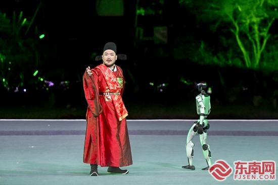 晚會(huì)以"綠韻長(zhǎng)泰"為序章徐徐展開(kāi),通過(guò)《狀元?問(wèn)》情景劇與《綠韻長(zhǎng)泰》生態(tài)舞蹈的沉浸式演繹,生動(dòng)再現(xiàn)千年古邑的人文積淀。在“四季飄香”篇章中,非遺瑰寶煥發(fā)新彩——國(guó)家級(jí)非遺古儺舞與省級(jí)非遺何陽(yáng)拳、大鼓涼傘同臺(tái)輝映,漳州方言說(shuō)古藝術(shù)攜觀(guān)眾穿越歷史長(zhǎng)河,郭源源清麗婉轉(zhuǎn)的《遇見(jiàn)》更添詩(shī)意。 “繁花似錦”單元?jiǎng)?chuàng)新融合傳統(tǒng)與現(xiàn)代元素,既有鼓樂(lè)與提線(xiàn)木偶的跨時(shí)空對(duì)話(huà),又有童聲合唱《我在這里長(zhǎng)大》的溫情述說(shuō),搭配時(shí)尚說(shuō)唱《醉美漳州》的律動(dòng)節(jié)奏,展現(xiàn)傳統(tǒng)與現(xiàn)代的和諧共生。壓軸的“山河共情”篇章高潮迭起,閩臺(tái)歌手聯(lián)袂獻(xiàn)唱《聲聲不息》架起情感橋梁,驚險(xiǎn)雜技《美味漳州》以肢體語(yǔ)言詮釋美食文化,兩岸藝術(shù)家同臺(tái)演繹歌仔戲更彰顯文化同源。