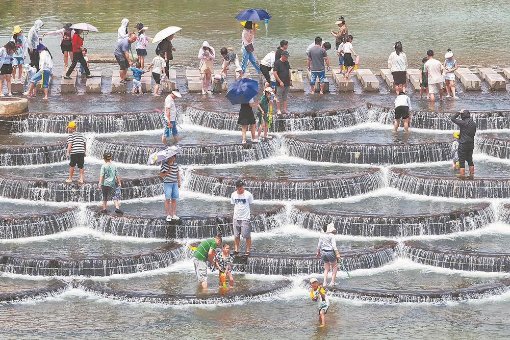 6月1日,福清市無患溪濱水生態(tài)公園水清岸綠,景美如畫,吸引眾多家長帶著小朋友前來游玩、嬉水,樂享端午假期。