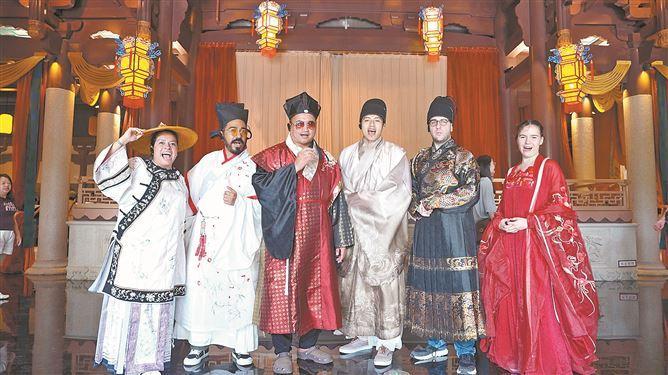 “芮吉塔”號郵輪乘客身穿漢服參與端午主題活動。(主辦方 供圖) 廈門日報訊(記者 吳曉菁)端午假期,全國首個閩南幻境主題景區(qū)——“嶼見閩南·時光幻境”(以下簡稱“嶼見閩南”)人氣爆棚。昨日,乘坐“芮吉塔”號郵輪登岸的外籍游客第一時間走進(jìn)園區(qū),參與端午主題游園,沉浸式體驗“可觸摸、可交互、可共情”的閩南文化盛宴。 首批境外郵輪游客沉浸式游園 “芮吉塔”號郵輪乘客是“嶼見閩南”迎來的首批境外郵輪游客。此次船岸聯(lián)動凸顯項目作為“全球閩南文化之窗”的吸引力。 “Amazing!”在園區(qū)里,外籍游客驚嘆連連。他們穿梭于三大演區(qū)、八大街區(qū)中,觀看非遺技藝表演,與身著傳統(tǒng)服飾的NPC互動合影,并陶醉在閩南小吃的誘人香氣里。郵輪游客還換上中國傳統(tǒng)服飾,深度體驗端午節(jié)限定的主題游園。 意大利游客盧卡·扎卡里說,“嶼見閩南”讓他記憶深刻。他在手機(jī)里錄下了“千年回響”的演繹視頻,也拍下了紅磚古厝等閩南建筑和主題游園過程。“穿著中國傳統(tǒng)服裝過中國節(jié)日,還和披著盔甲的‘中國將軍’互動,我覺得很有意思。”他說。 據(jù)悉,“嶼見閩南”5月17日開業(yè)后,不僅日均流量超出預(yù)期,更揭開港航文旅深度融合的新篇章,進(jìn)一步提升廈門國際郵輪母港的競爭力和吸引力。今年下半年廈門國際郵輪母港將陸續(xù)迎來“招商伊敦”號、“威斯特丹”號和“七海探險家”號等國際豪華郵輪,并作為母港啟航兩條特色“海絲”郵輪長航線。 打造年輕多元的閩南文化之窗 “天有多大,海有多闊,討海的人,趕潮落水,希望有魚來入網(wǎng)……”簡單的旋律,樸素的閩南話歌詞,配上美妙的合唱,廈門六中合唱團(tuán)昨日在“嶼見閩南”現(xiàn)場演繹閩南民謠《魚歌》。合唱團(tuán)成員坐在道具漁船邊,以純凈的人聲合唱為核心,結(jié)合響指、拍掌、跺腳等方式,編織出一幅生動立體的聲音畫卷。 這場獨特的表演讓在場的游客耳目一新,不少人舉起手機(jī)記錄這動人一幕。游客李先生感嘆道:“雖然歌詞聽不太懂,但那種韻律和孩子們投入的表演,真的讓我‘聽’到了海的感覺,特別有感染力!” “嶼見閩南”項目副總經(jīng)理黃濤表示,“端午假期,我們特別聯(lián)動廈門六中這樣的優(yōu)秀學(xué)校團(tuán)體,就是希望能打造一個開放、多元、充滿活力的閩南文化傳播平臺。孩子們用年輕的方式詮釋傳統(tǒng),賦予了閩南文化新的時代氣息,效果特別好。未來,‘嶼見閩南’將持續(xù)開放懷抱,歡迎更多力量加入,共同探索和創(chuàng)新閩南文化的現(xiàn)代表達(dá)?!?/p> |